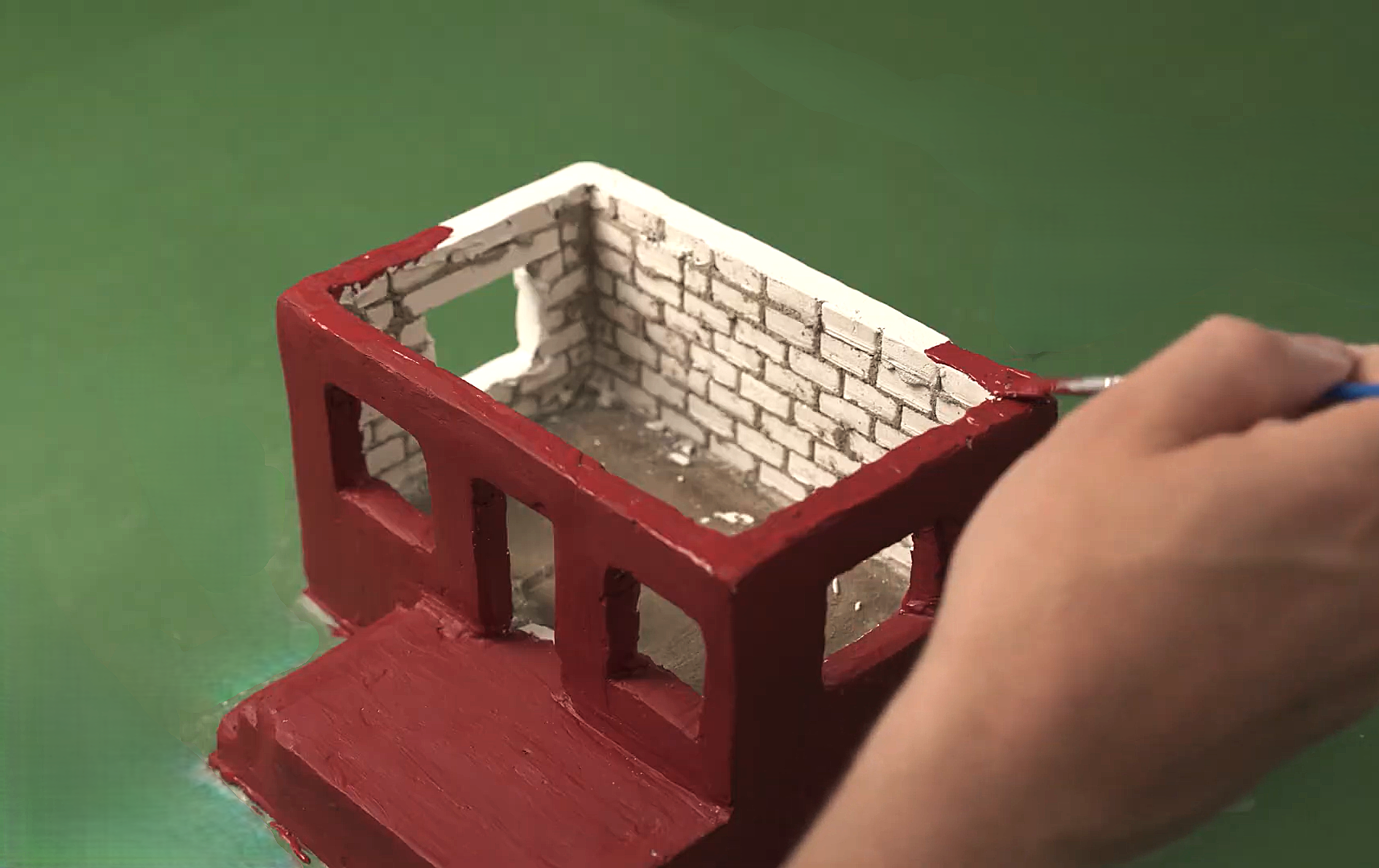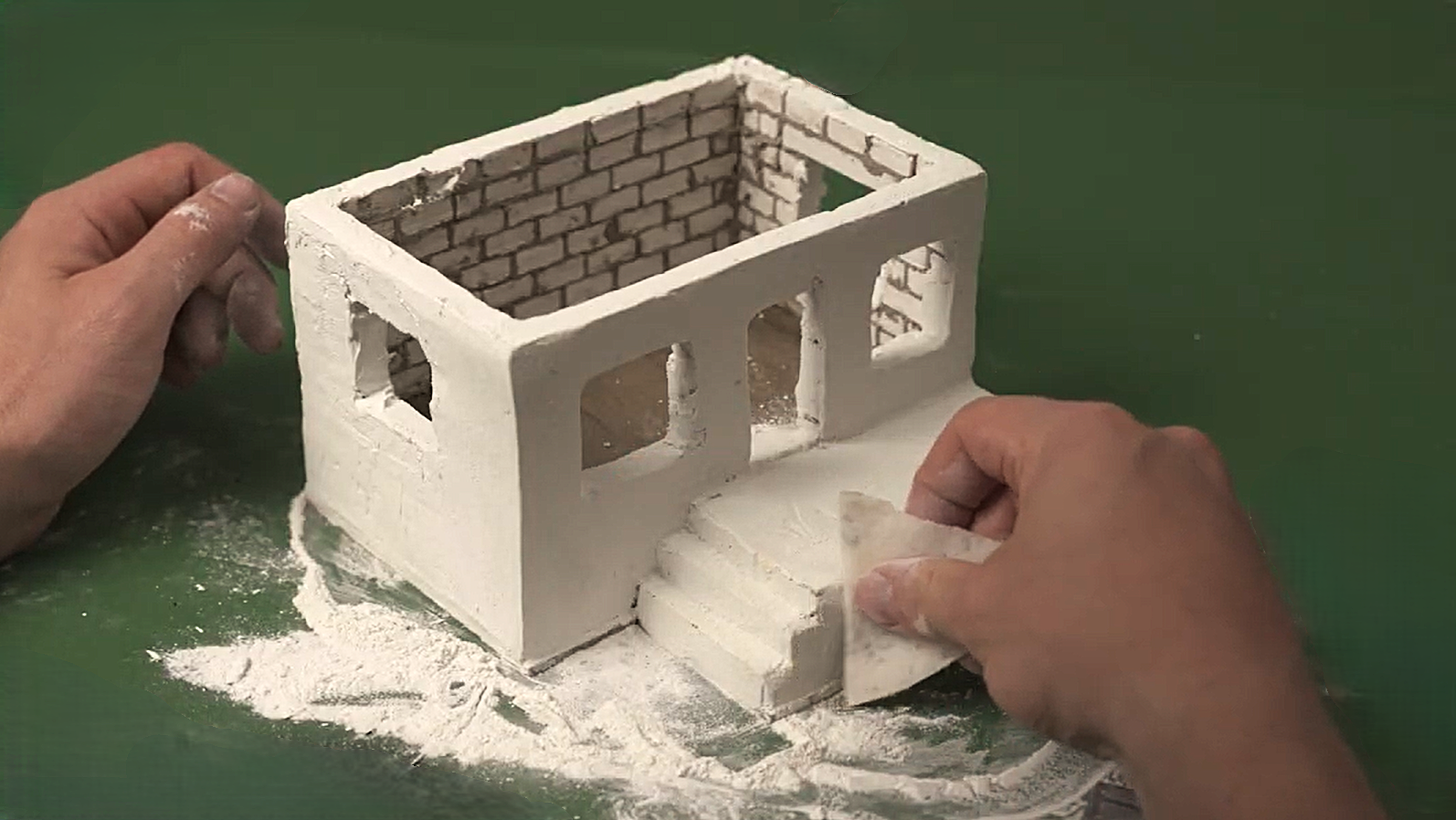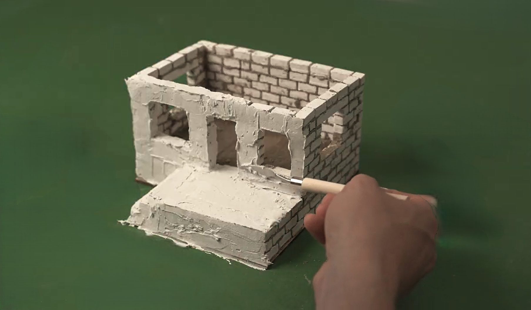 Pour the mixture onto the base, pressing gently and smoothing with a larger trowel. Add the mixture to the hardened stair formwork, pressing gently so that the cement fills all the gaps.