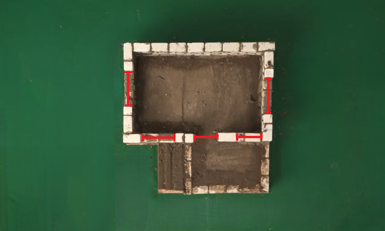 Place 4 to 7 bricks and place reinforcement bars (wire mesh) on top of them to strengthen the foundation.