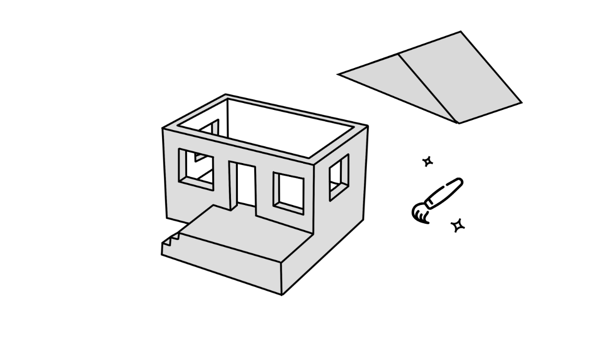 Two small buckets should be enough for the exterior walls, one for the interior, and one for the roof.